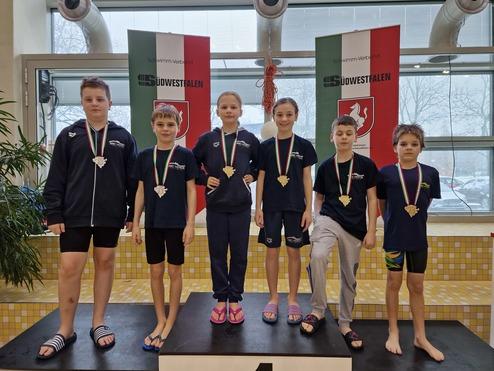 Die Mannschaft des Schwimm-Verbandes erreichte den 2.Platz, und damit Silber, beim Vergleich der Auswahlmannschaften der sieben NRW-Schwimmbezirke
